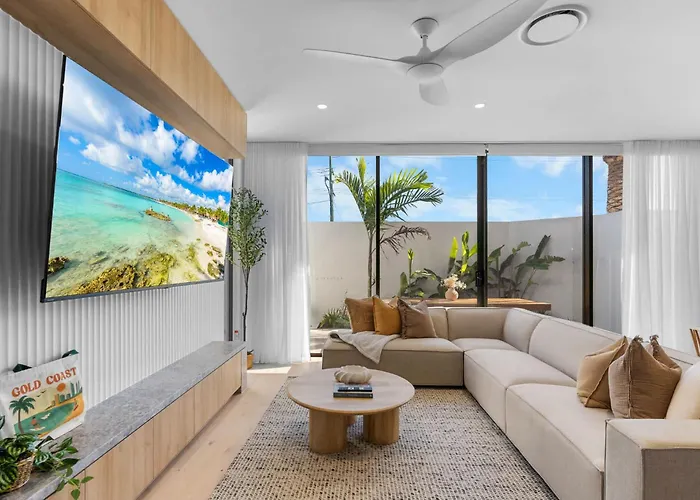 Self-catering facilities at this Gold Coast accommodation include a fully equipped kitchen plus an oven and a dishwasher. The property is in the vicinity of restaurant Edgewater Dining and Lounge Bar. The Capri - Luxury 3Br Townhouse Surfers Paradise With Pool villa is within a 400-metre distance of Salerno St at Fiesta Avenue bus stop and 14 km from Varsity Lakes train station.